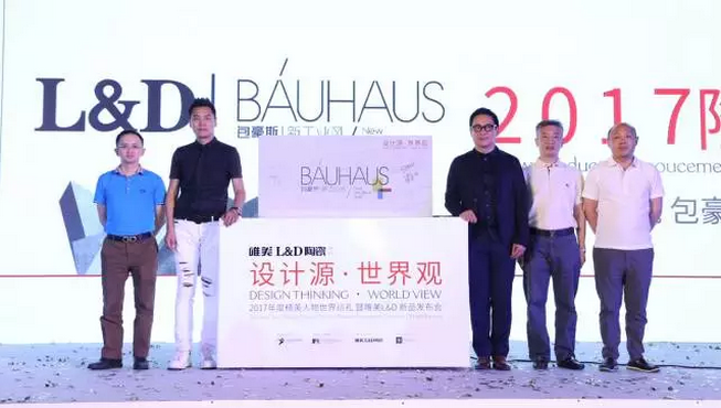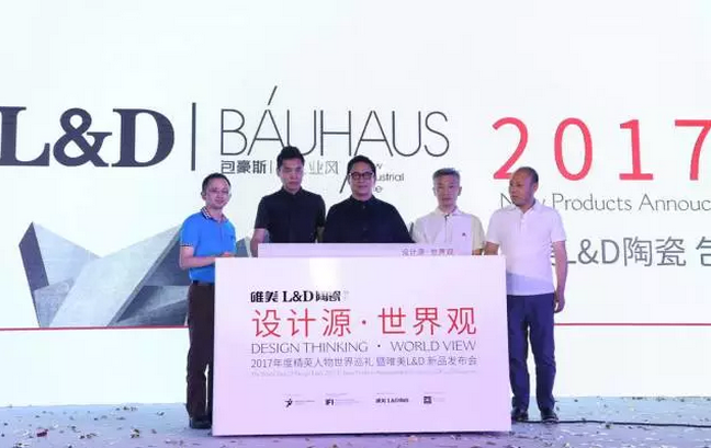 唯美L&D陶瓷作為本次活動的獨家承辦方,也在這次大咖云集的盛會上大放異彩,隆重發布了2017年“包豪斯·新工業風”新品。由梁志天先生、孟也先生、唯美L&D陶瓷事業部副總經理喻紅華先生、北京遠東神華集團副總裁孫凱先生、北京遠東神華集團副總裁武占峰先生共同完成了新品揭幕儀式。揭幕儀式后,梁志天先生、孟也先生紛紛在“包豪斯·新工業風”產品上簽名留念,現場千位設計師朋友們共同見證了這一時刻。